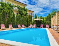 Отличный гостевой дом. Достаточно вкусно кормят, очень внимательный персонал, убираются часто. Есть уютная мангальная зона, пространство для приема пищи на двух этажах. Хороший бассейн, достаточное кол-во шезлонгов для всех желающих.
