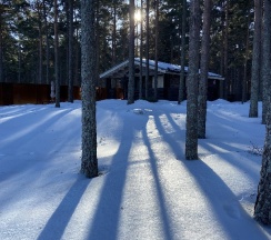 Всё замечательно. Сейчас отдыхаем на этой базе в домике “Family A-frame”, 4 взрослых и ребёнок. Отличный домик, всё есть, вплоть до зубочисток. Внутри посуда из икеи, хорошего качества, кастрюли, сковородки. Стиральная машина, посудомоечная машина, фен. Газовая плита, телевизор. Внутри чисто и хорошо. Не знаю, кто пишет отзывы про уставший интерьер, по факту всё не так, либо руководство вовремя всё исправляет. Вообще отзывов свежих мало, кто думает ехать или нет – не сомневайтесь! Добирались сюда без проблем. Часть компании приехала на машине, я доехала вечером на электричке и такси, от Сосново. Таксиста нам порекомендовали на базе. Доехала отлично.На базе выход к Ладоге, множество сосен. Народ друг-другу не мешает, в общем благодать. На улице перед домиком мангальная зона с навесом от дождя и столик со стульями. Так у каждого домика, даже у самых маленьких. Живописные места. К нам пришла местная собачка, которая, видимо, тут живёт, очень ласковая и спокойная. Мы её угостили едой и погладили, ребёнок в восторге. Сейчас на улице минусовая температура, но в домике тепло, иногда даже жарко, теплые полы регулируются. Вещи развозят на электрокаре. По территории машины не ездят, что большой плюс. Пожалуй, одно из лучших мест, где мы были. Теперь будем сюда возвращаться.♥️