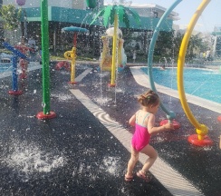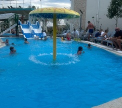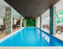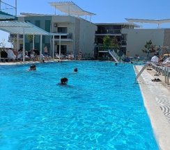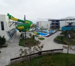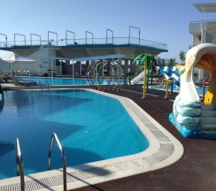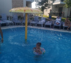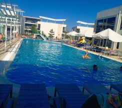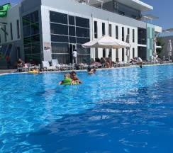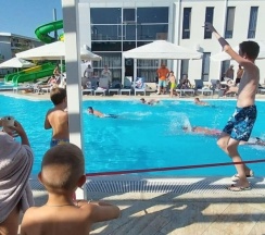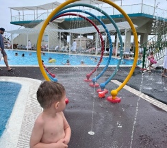 Так, как у нас было начало сезона, погода была прохладной, уличные бассейны только наполнялись, мы купались во внутреннем бассейне. Бассейн чистый, подогреваемый. Имеется зона с ванной-джакузи, где маленьким дети просто в восторге. Так же есть инфрокрасная сауна, хамам, финская сауна. В определённое время приходит фитнес тренер заниматься аквааэробикой.