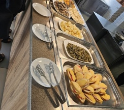 Теперь о ресторане: вкусная, разнообразная еда. Маловато отдельных овощей с зеленью (списываю на начало сезона). Отдельное спасибо персоналу кухни Владу и Насте. Поваров не видел, но они знают свое дело. Мясо тает во рту, овощи хорошо приготовлены - не "сопли", с лёгкой хрустинкой. В салатах не преобладает майонез, как в каких-то столовках.