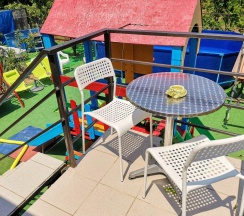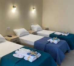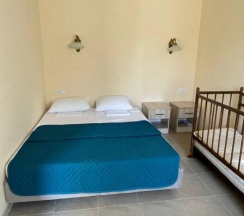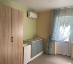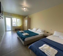 Двухкомнатные апартаменты вместимостью до 4 человек, имеют отдельный вход и свою небольшую территорию со столом, стульями и шезлонгами. Номера этой категории находятся на 1 этаже. В распоряжении гостей: двуспальная и односпальные кровати, постельное белье и полотенца, кондиционер, мини-холодильник, кухонный гарнитур для приготовления холодных блюд, телевизор, Wi-Fi, санузел, душ. Дополнительное место предоставляется по запросу.