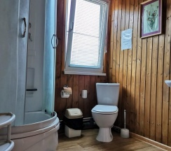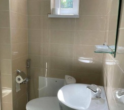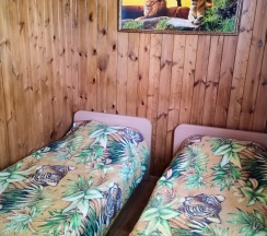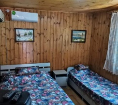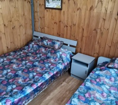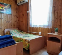 Двухкомнатный домик вместимостью до 5 человек. Общая площадь 30 кв.м. В распоряжении гостей: полутороспальная и три односпальные кровати, постельное белье и полотенца, кондиционер, телевизор, Wi-Fi, шкаф и тумбочки, два санузла.