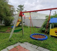 Неплохая детская площадка, качели, карусели... В общем, всё, что нужно. Тут же вход в бассейн, НО он платный, 1000 р за вход. Для проживающих в гостинице есть возможность заплатить один раз в день и ходить туда-сюда по 10 раз.