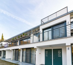 2-х комнатные двухуровневые апартаменты с собственной террасой и видом на горы для ценителей комфорта — идеальный вариант для размещения до 4-х гостей. Общая площадь — 70 кв. м. Для удобства гостей апартаменты оснащены необходимой мебелью и бытовой техникой. Вход в апартаменты расположен на 1-м этаже. Апартаменты имеют панорамное витражное остекление и москитные сетки. Терраса оснащена набором плетенной мебели и шезлонгом для загара.