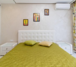 Апартаменты оборудована системой кондиционирования и отопления, плазменным телевизором, беспроводным Wi—Fi.