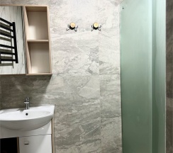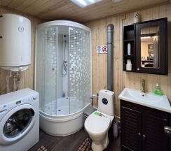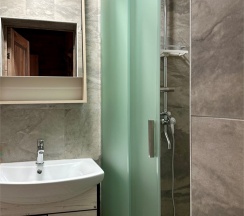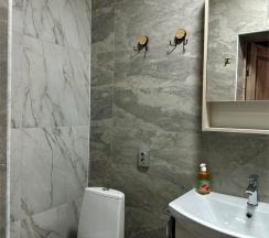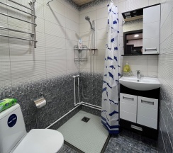• Индивидуальная ванная комната: Современная ванная комната с душем и туалетом.