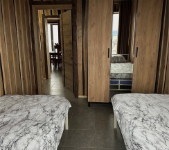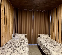 • Две отдельные спальни: Идеально для семьи или компании друзей. В каждой спальне по две односпальные кровати, которые легко превращаются в одну двуспальную. Шкаф для вещей с зеркалом и большое панорамное окно дополняют комфорт.