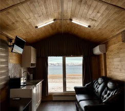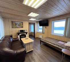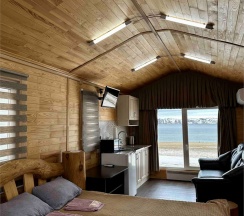 Прекрасное место для проживания на базе отдыха. Домики уютные и тёплые, несмотря на северный климат. Есть всё необходимое для комфортного отдыха, особенно порадовали удобные кровати