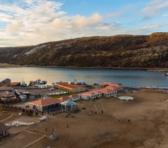 Уютные небольшие домики со всеми удобствами и с панорамным видом на Баренцево море. Есть ресторан, где можно попробовать блюда местной кухни с морепродуктами и олениной.