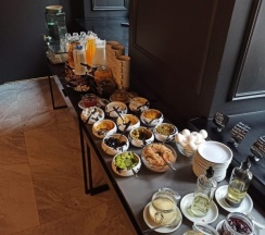 Отель находится в тихом месте, недалеко от Фонтанки (минут 25 пешком) и Невы (45 мин), рядом со станцией метро Пушкинская. В отеле очень чисто, красиво. Мы семьёй с детьми жили в номерах de lux, каждый день уборка, полотенца менялись, добавлялись средства гигиены. Все новое, красивое. При заселении возникли небольшие проблемы с предыдущими жильцами, но управляющая Любовь все разрешила, чтобы мы не расстраивались, угостила чаем))) и ещё получили презент от отеля. Персонал очень вежливый, незаметный. При просьбе у ресепшена можно получить гладильные принадлежности, у меня была очень высокая подушка, мне заменили на другую. Единственное, очень дорогая стирка, но это уже мелочи. Завтраки были в виде шведского стола. Еда на любой вкус: от зелени и курицы до блинчиков и орехов.