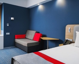 Здесь гостей ждут просторные номера с большими уютными кроватями, белоснежным постельным бельем и удобной функциональной мебелью. В каждом из 116 современных номеров есть Wi-Fi, телевизор, утюг и гладильная доска, сейф и станция для приготовления чая и кофе.