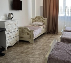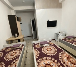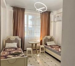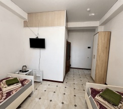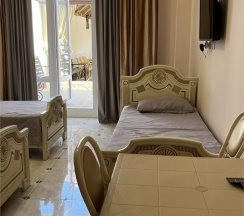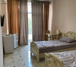 Остановились вдвух местном номере , кровати красивые , кондер холодильник в номере есть ,,,,, до пляжа идти 3-4минуты , пляж чистый отдыхнули на ура ! Хотелось бы дороги чтоб были по лучше а в остальном все отлично !