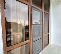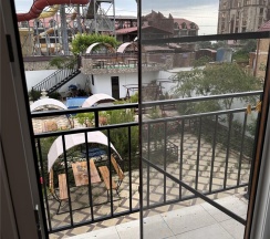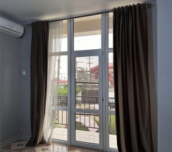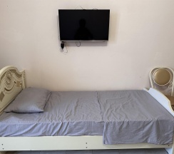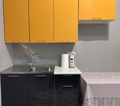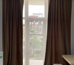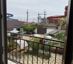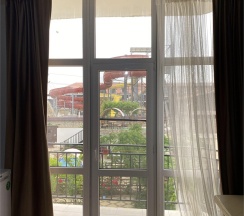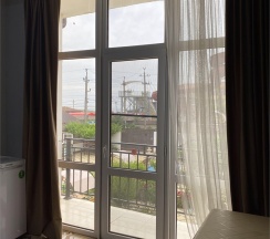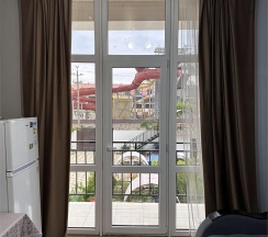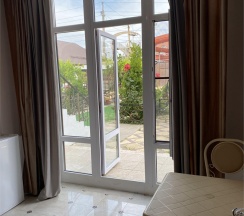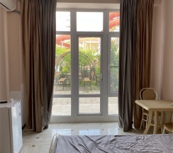 отдельный вход в номер со двора,вид во двор панорамные окна ,все условия в номере душ ,санузел, сплит система ,мини холодильник , телевизор, электро чайник и стол!