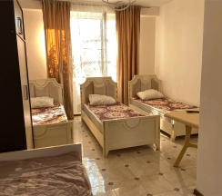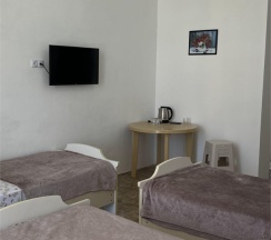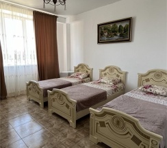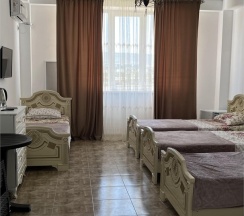 6 местнный номер,с двумя двуспальными кроватями,диваном,с окна идёт вид на горы.