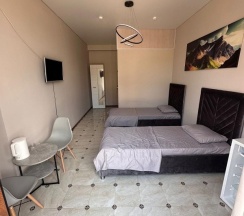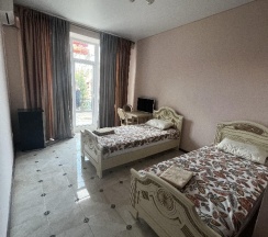 Остановились вдвух местном номере , кровати красивые , кондер холодильник в номере есть ,,,,, до пляжа идти 3-4минуты , пляж чистый отдыхнули на ура ! Хотелось бы дороги чтоб были по лучше а в остальном все отлично !