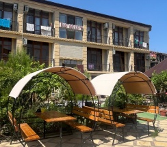 Отличный семейный отель до моря метров 300 400 есть своя территория с беседками вечером можно посмотреть мультфильмы на проекторе во дворе своя столовая можно позавтракать вкусно как дома в общем рекомендую