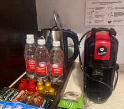 на ресепшен имеется комната с кофейным аппаратом и где можно оставить чемоданы.