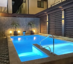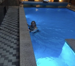 Бассейн не большой, вода в апреле теплая, не купалась только из-за страшного ветра и дождя.
