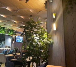 Не хватает зеркала в прихожей во весь рост (во многих гостиницах это замечаю) и информационных табличек: как пользоваться сейфом, как позвонить на ресепшн. Зато есть меню ресторана. Сам ресторан - еще 5 звезд. Завтрак обычный, всего хватило.