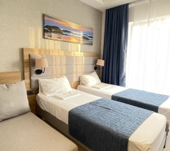 Хороший отель. Свежий ремонт. Удобные кровати и белоснежное белье. Не очень обширный, но вкусный завтрак включен в стоимость. До моря ходит трансфер с 9.00-19.00, каждый час.