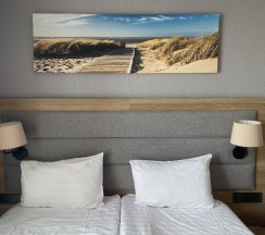 Отличный номер с видом на море( вдали). Если оставить открытым балкон ( на котором очень славно посидеть, любуясь закатом над морем), то будет шумновато от дороги под окнами. Номер очень эргономично продуман: много мест под вещи, отличная душевая кабина, очень удобно и грамотно сделано освещение и общее и локальное.