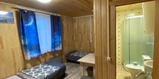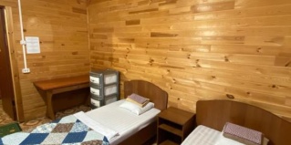 Очень хорошее уютное место. Есть домики, есть двухэтажные корпуса, я жила в двухместном корпусе. В номере есть 2 обогревателя, которые хорошо держат тепло и бесшумные. Есть водонагреватель. Тепло и уютно. А кормят так вообще) до отвала) очень вкусно и сытно, по-домашнему)