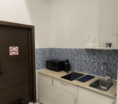 Прилетали на новогодние праздники. До отеля добрались быстро, от метро недалеко. Отдельно стоящее 3-х этажное здание. Пришли около 10-ти утра. Есть место , где можно оставить вещи . Также в цоколе есть просторное помещение для ожидания. Моя дочь устала после перелёта, решили посидеть. Но нас заселили буквально в течении 10 минут. Заселение бесконтактное. Сотрудники всегда на связи в WhatsApp. Номер хороший, тёплый. Кровати удобные. Полотенца, моющие средства есть. На кухне достаточное количество посуды, микроволновка. Всё чисто. Порадовал идеально чистый чайник, без накипи. Хотя она образуется уже через пару кипячений. Просторная душевая кабина, окно в ванной комнате. Поздравили с Новым годом имбирным пряником. Приятно. Магазинов рядом нет, ближайшая "Пятёрочка" в 15 минутах ходьбы. И всё. У Павелецкой есть Перекрёсток, Вкус вилл и SimpleWine. Проживание нам понравилось.