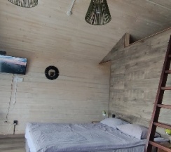 Приятное место, удобное расположение, за 1000р/сутки домик есть всё необходимое: 2 односпальных и 1 двухспальная кровать, кухня, чайник, холодильник, телевизор, туалет на улице, а так же теплый душ(летом), мануальная зона( мангал находиться в беседке, и даже есть решётки). Детская качеля. Выезд до 13:00. Всеобщем рекомендую! И конечно же по возможности вернёмся именно сюда (прошлые пару раз не было мест).