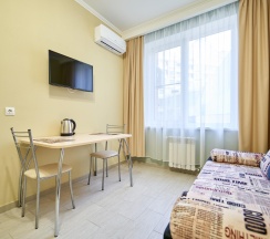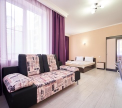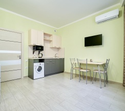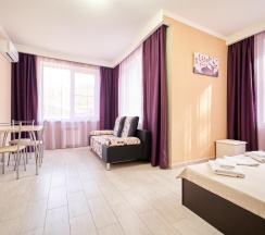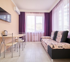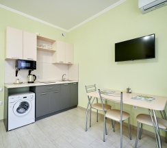 2-х комнатный апартамент с кухней- студией состоит из спальни, кухни с диваном и туалетной комнаты. Кухня полностью оборудована необходимым инвентарем.