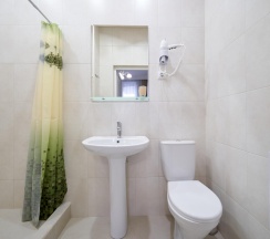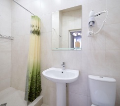 Номер состоит из одной комнаты , отдельный вход из коридора,с кондиционером,кровать 1,6м ,диван 190 см ,холодильник ,стиральная машинка ,туалетная комната с душем ,фен ,прихожая ,шкаф 2-х створчатый ,комод ,кухонный стол,чайник ,телевизор .