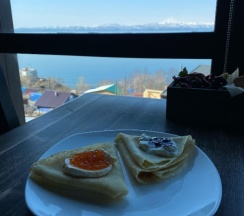 Отличное место для отдыха с видом на Авачинскую бухту. Виды разрыв сердца. На завтрак омлет с крабом все как я люблю.