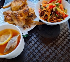 Заезжали вечером в кафе - большое разнообразное меню, персонал нормальный на грубость не попали,чисто и уютно. Брали позы -вкусно, салат с древесными грибами отменный, морс, компот все устроило. Крылья куриные немного нам не зашли , так как любим их в кисло-сладком соусе, но по вкусу нормальные.
