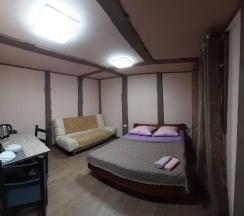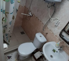 Кстати, отличное местоположение, до ближайших магазинов (пятерочка, магнит, Мария ра) дойти буквально 3 минуты. Сам номер у нас прекрасный, есть туалет и просторный душ, кухня с микроволновкой и чайником, удобная двуспальная кровать. Есть номера и больше, для семей с детьми.