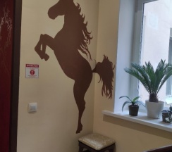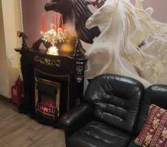 номер не большой, нет лишнего пафоса. Но в номере всё есть -холодильник, обогреватель, телевизор...душевая с хорошей сантехникой .. душевая кабина... Одноразовые средства по уходу... Тапочки...всё чистое и приятное. Сам отель не большой, в коридорах по домашнему уютно. Много декора с лошадями. Кухня -это отдельное что-то... Есть вся необходимая техника и посуда. Даже духовка и посудомоечная машина. Большой общий холодильник. Телевизор... при долгом проживании в отеле очень удобно готовить и хранить на будущее... много сковородок и кастрюль, чашек и тарелок... специи... думаю это оставляют прошлые жильцы, поэтому оно накапливается ..Всё изначально чисто...дальше за собой нужно убирать .. расположение хорошее. Не шумно. До метро 10минут пешком. Сели .. 10минут и вы возле Кремля... На улице пахнет какао. Рядом шоколадная фабрика и их магазин... Рядом кафе на букву Ш где можно поесть. Бизнес ланч 400р. Борщ, рис с мясом и грибами, салат огурцы/помидоры и компот...
