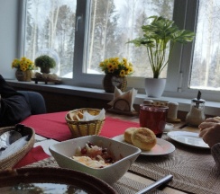 Хочу порекомендовать это место отдыхающим. Уголок умиротворения и спокойствия на Байкале. Номера чистые, персонал очень приветливый! Отдельной спасибо Людмиле (администратор), все просьбы либо какие то вопросы возникающие в ходе прибывания разрешаются очень быстро. Завтраки входят в оплату, ассортимент не очень разнообразен, но каждый найдет чем полакомиться с утра). На территории есть бассейн, баня, настольный теннис, фотозона, плодово-ягодные насаждения - все можно пробовать)).