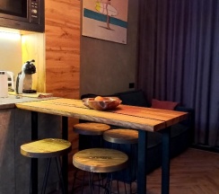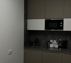 Очень высоко расположена полка с кружками (см фото), видимо предполагается, что заселяться можно только в паре с высоким мужчиной или стремянкой