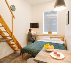 Отличная гостиница! Номера это небольшие квартиры. Есть всё необходимое. Для гостей есть прачечная (стирка бесплатно), в шаговой доступности все музеи города и набережная. Гостиница находится прямо у красивого парка с рекой. Очень приемлемые цены для такого качества предоставляемых услуг. Есть камера хранения, где можно оставить вещи, если например прибываете в город до заселения. Есть автомат с кофе, что для меня отдельный плюс.