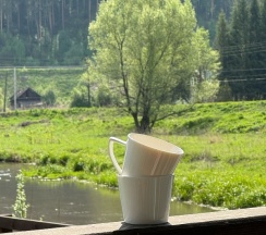 Очень красивая и ухоженная территория! Жили в домике «Тайга», уютно и чисто, своя терраса где можно любоваться природой! В домике есть все необходимое для комфортного времяпрепровождения. На территории есть место для посиделок у костра, баня, горная речка с мостиком и…самая ласковая и дружелюбная кошечка🤗🐱 место обособленное от других баз, для настоящего уединения с природой и отдыха как с семьей, так и компанией друзей!
