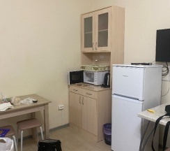 Номера чистые, в номере есть микроволновка, холодильник с морозилкой, чайник, посуда, рядом магазин Дикси