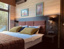Понравилось: Прекрасное место для того ,кто хочет отдохнуть от городской суеты!!Панорамные окна и терраса с видом на лес никого не оставить равнодушным Шикарная кровать и комфортное проживание со всем необходимым!За отдельную плату можно заказать еду прямо в домик!!На территории есть бассейн!В стоимость входит очень вкусный завтрак!!
