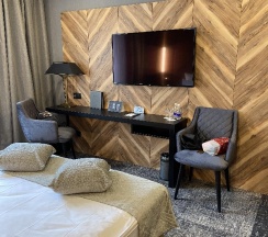 Отель очень понравился, приезжали семьей с ребенком 5 лет, номер семейный двухкомнатный. Очень приятный интерьер, ванна - огромный плюс, мягкая большая кровать, шторы блэкаут, телевизор, очень много ванных принадлежностей 👍🏼