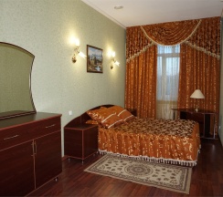 Останавливалась в гостинице на 1 сутки, впечатление хорошее: в номере чисто, есть халат (прекрасно), тапочки. Все добротное, работает. Однозначно рекомендую к посещению и проживанию🌺