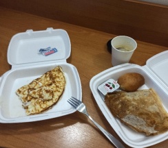 Завтрак выбирается из нескольких вариантов. Поэтому если вам не по душе блинчики, можете выбрать яичницу.