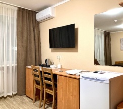 Не знаю, как другие номера, но №11 новенький, всё цело, чистота идеальная. Белоснежное постельное белье, холодильник, чайник, посуда, принадлежности для душа и т. д. Короче говоря, всё есть. Ну кроме одноразовых тапочек - это-то вот маст хэв для отелей. Завтрак входил в стоимость (простенький: глазунья из двух яиц, блинчик с творогом и сгущенкой и чай/кофе). Цена только вот перегретая для такого городка - 3200₽ за двухместный номер. И нет охраняемой стоянки. А так нормальный отель.