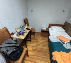 Вполне хороший 1-местный номер, не люкс, но всё нормально для отдыха на одну ночь перед поездом. Холодильник, сплит-система, шкаф, стол со стульями, 1-спальная кровать с нормальным матрасом, в шкафу ещё одеяло. Тишина в отеле, туалеты чистые, в душе ещё не была, у меня в номере окна выходят на автовокзал, но шума машин практически не слышно (или я так воспринимаю)). Милая и доброжелательная администратор! В общем коридоре есть чайник и микроволновка.