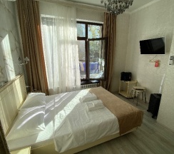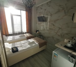 Проживали в отеле в июле 2025 года , 7 ночей. Плюсы отеля: Расположение - в центре города, рядом ж.д. вокзал, автовокзал, мор.вокзал, так же 2 пляжа городских "Маяк" и "Ривьера". Много кафе, магазинов. Сам отель симпатичный , номера чистые, уборка номеров качественная, каждый день приносили гель для душа , шампунь и мыло. Душевая кабина большая и удобная, в ванной есть полотенцесушитель. Администраторы быстро реагировали на наши проблемы и решали их. Минусы: Отсутствие москитной сетки ( на сайте указано, что она есть) как результат комары в номере. Запах канализации в ванной. Слышимость просто отличная с других номеров, такое ощущение, что человек разговаривает в нашем номере. Отсутствие покрывало на кровати.