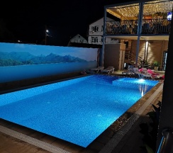 Самое главное преимущество этого отеля это тёплый бассейн! В Прохладном мае дети 2 часа плавали, это огромный плюс! А в целом все аккуратно и чисто и до моря 5 мин!