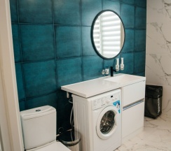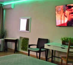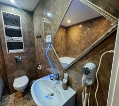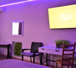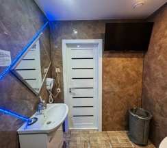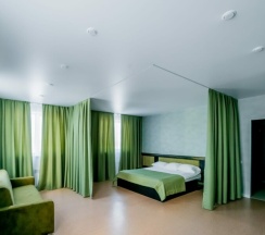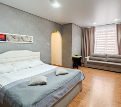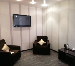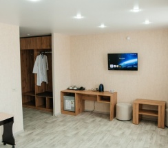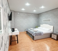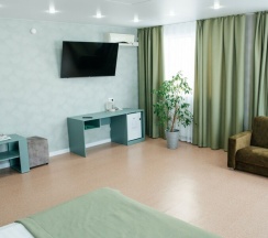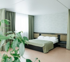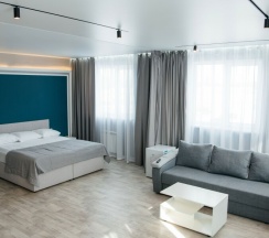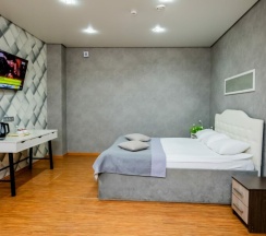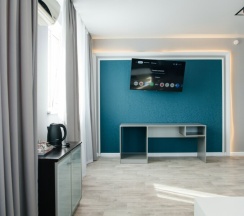 Номер бизнес-класса - уютный дизайн и современное оснащение номера (высокоскоростной интернет, стиральная машинка, мини-холодильник, микроволновка, TV, фен) — здесь есть все для вашего комфорта. Особенностью номера выступает балкон.