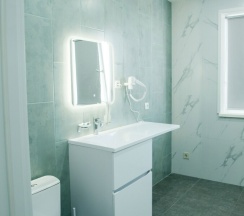 Комфортный и уютный номер "Премиум" класса. Замечательно подойдет для семейных пар и комфортного отдыха. Просторный номер с большой двуспальной кроватью и диваном. Теплый пол. В стоимость номера включен завтрак "шведский стол" на двоих и бесплатное посещение бассейна с 8:00 до 10:00.
