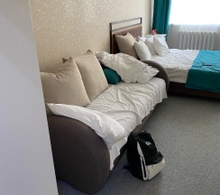 Хорошие уютные номера чистенько, кровати обалденные. Вежливый персонал. Уже не первый раз проживаю. Стиральная машина, утюг и кухня всё доступно.